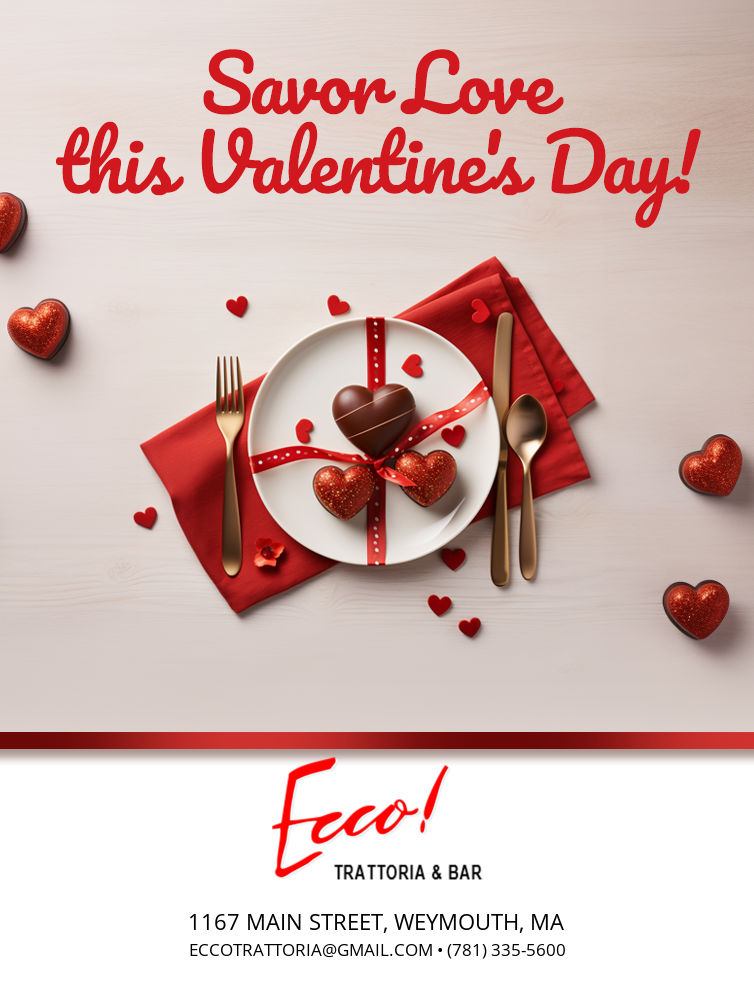 At Ecco, we strive to make your dining experience a great one every time. Our owner and chef Edgar DeLeon have created a fabulous menu made up of only the finest ingredients. He puts his heart and soul into Ecco, and his effort and caring show in the food, service, and atmosphere. Eddie has over 20 years of experience in several well-known Boston restaurants but has taken his skills to a new level as owner and executive chef of Ecco. He is of the belief that if you use the best ingredients, keep the menu creative, and place the customers’ experience at the forefront of the business then people will keep coming back.